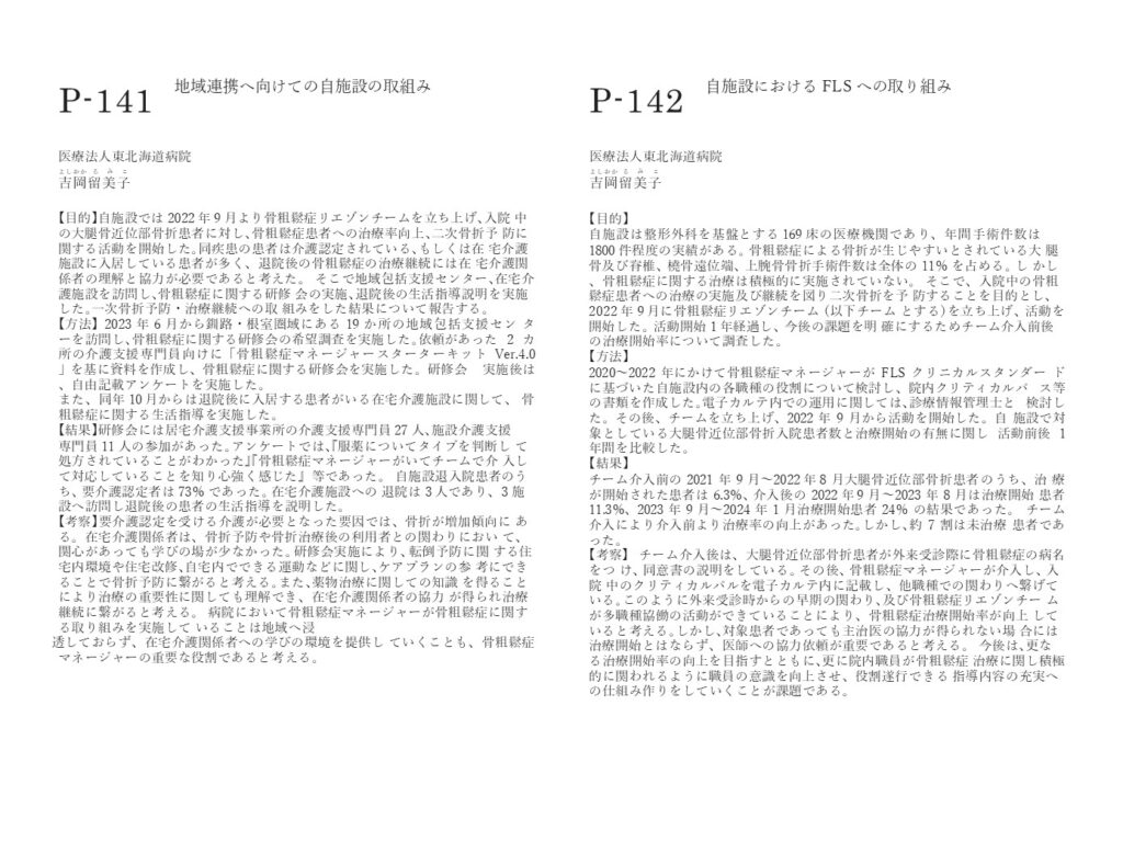 10月11日から13日、石川県金沢市にて開催された第26回日本骨粗鬆症学会に当院看護部長 吉岡、社会福祉士 中鉢が参加し2演題の発表がありました